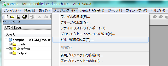 ワークスペースのカレントプロジェクトに"Thumb_ATCM_Debug"が選択されている状態で,