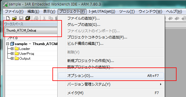 プロジェクトのオプションを変更します。 C/C++コンパイラのコードオプションにてThumbモードを選択 リンクするカーネルライブラリをARM用からThumb用に変更
