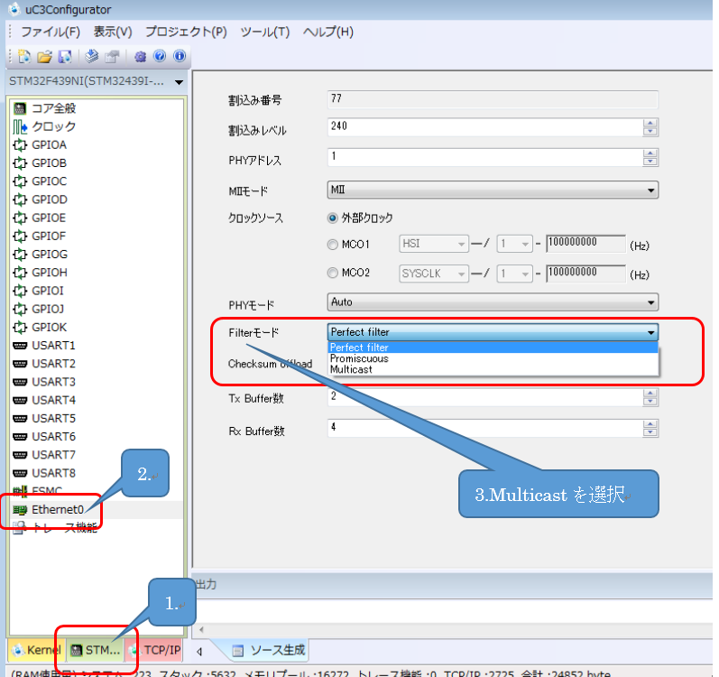 コンフィグレータに対応しているパッケージについては下図のように、コンフィグレータでイーサネットドライバの設定を変更後、